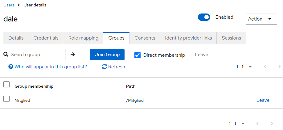 This will result in groups and roles assignments as in the following screenshots (they show the situation after a successful login, so they do NOT constitute a step in the setup, but rather illustrate the effects of the mapper!):