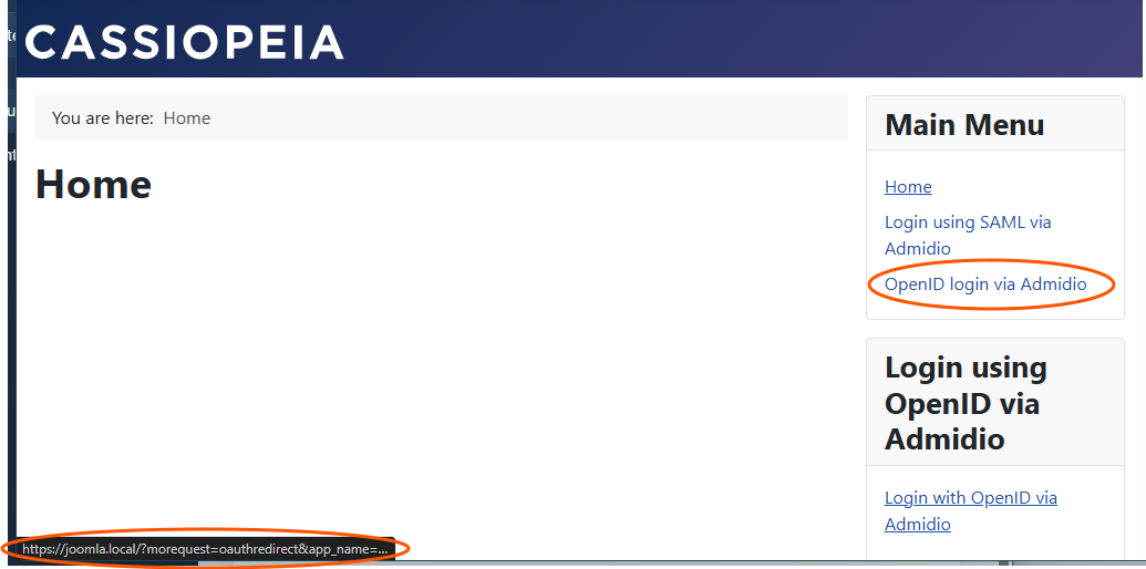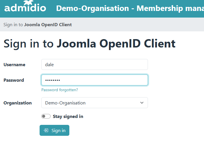 Admidio and Joomla should now be set up to use Admidio for logging in to Joomla. The normal Joomla login form will still be shown and does NOT redirect to Admidio for login. Rather, it can be used for login with local Joomla accounts, which still can exist in addition to OpenID (or SAML) SSO.