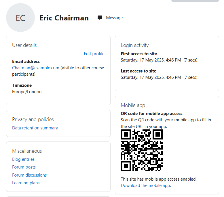 After choosing SAML login and loggin in with a user from Admidio, you should be logged in to Moodle.