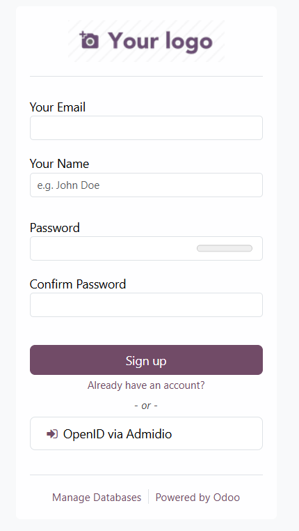 Starting with version 5.0, Admidio can be used by other applications to authenticate users against Admidio's user base. These instructions will guide you through the process of connecting Odoo to Admidio to use Admidio's login. For general instructions, and other apps, please visit the general Single-Sign-On overview page.