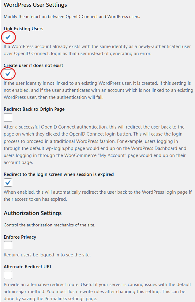In addition, WordPress also provides settings to map OpenID claims (defined profile fields with a fixed name, defined in the OpenID standard) to the WordPress user's ID, nickname, email and fullname, as well as flags to enable automatic user creation when a new user logs in to WordPress.
