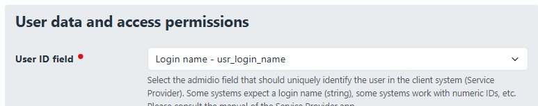 First, you have to configure Admidio to use the “Login name - usr_login_name” as the “User ID field”.