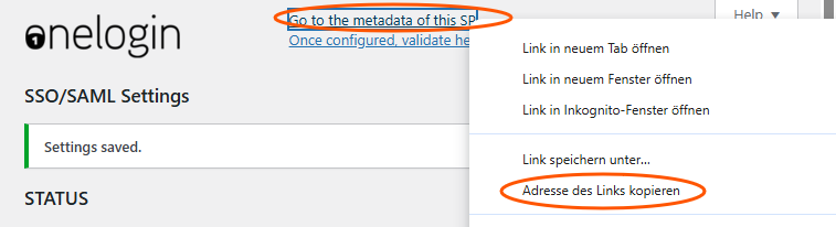 If the basic settings are valid, the Wordpress plugin provides a link at the top of the page to check the validity of the configuration. At the very top of the config page is also the link to the client (SP) metadata XML file, which can be pasted into Admidio for auto-configuration of the SAML access (right-click on the link and copy the link location to the clipboard).